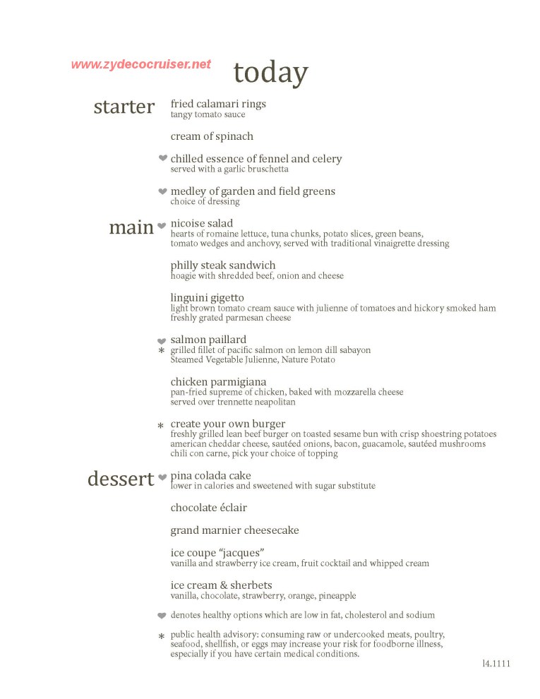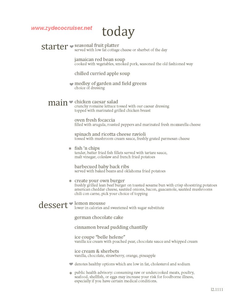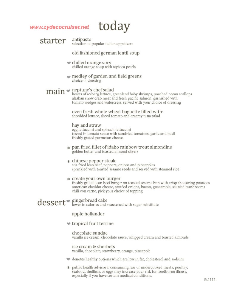 Note: Many pictures are from cruises with a number of sea days - not all cruises will have all foods.